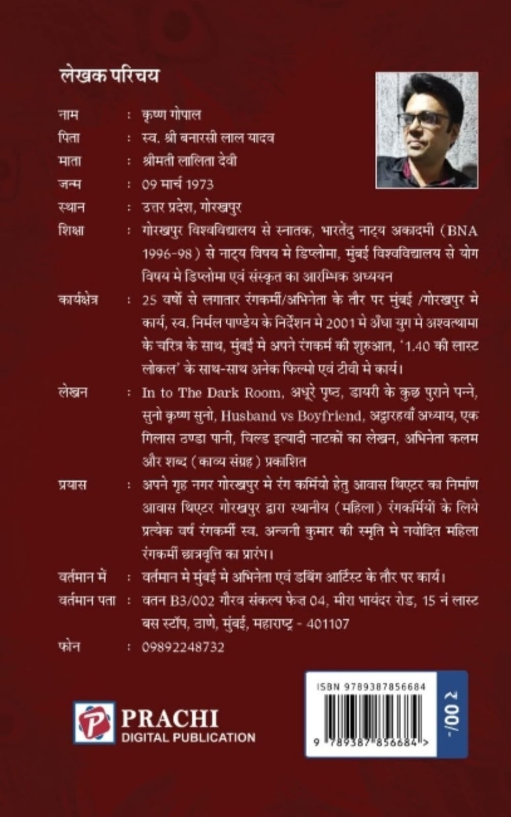 साउंड के क्षेत्र में डबिंग आर्टिस्ट के रूप में कार्य।आपकी प्रकाशित रचनाओं में "इन टू द डार्क रूम,